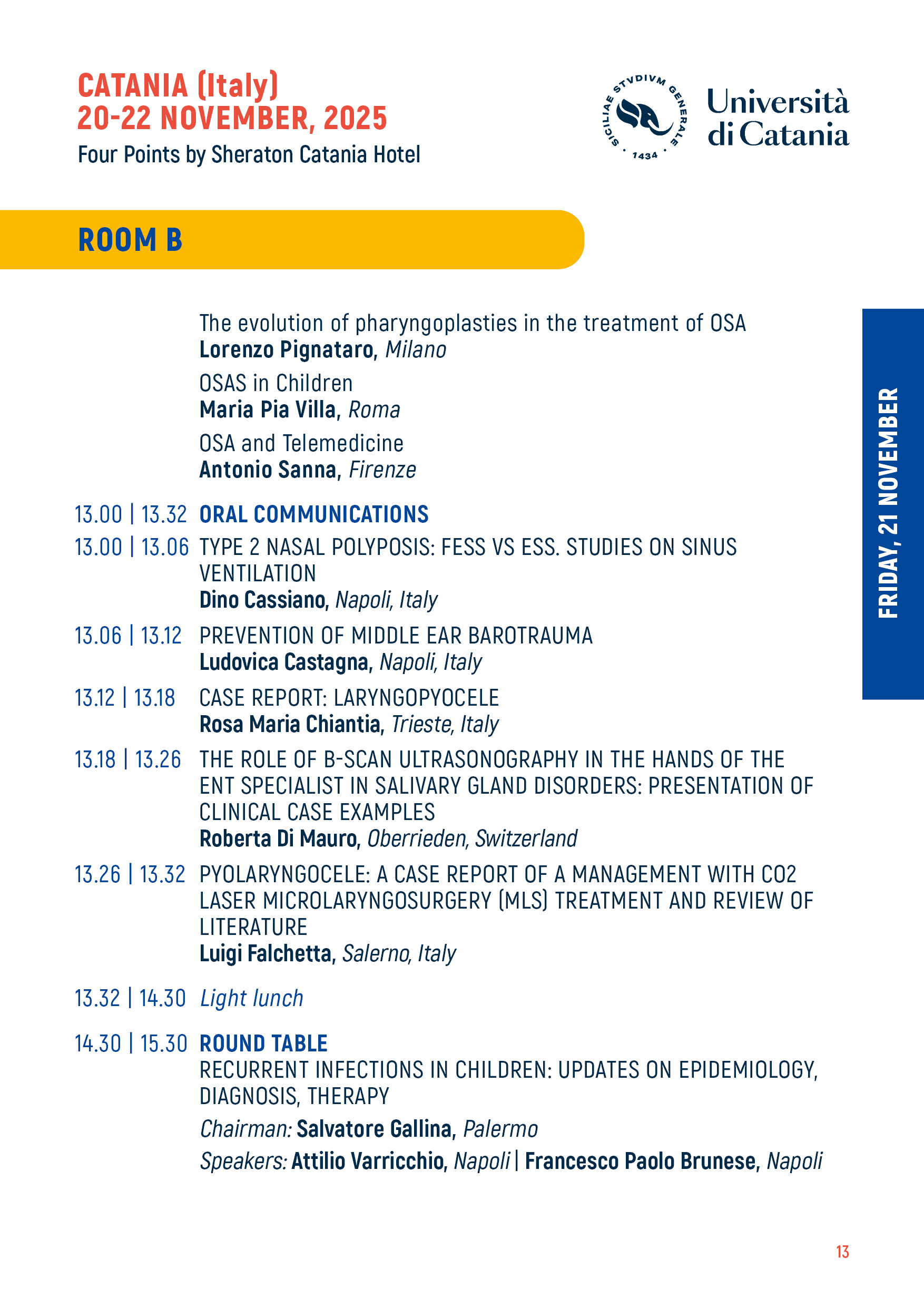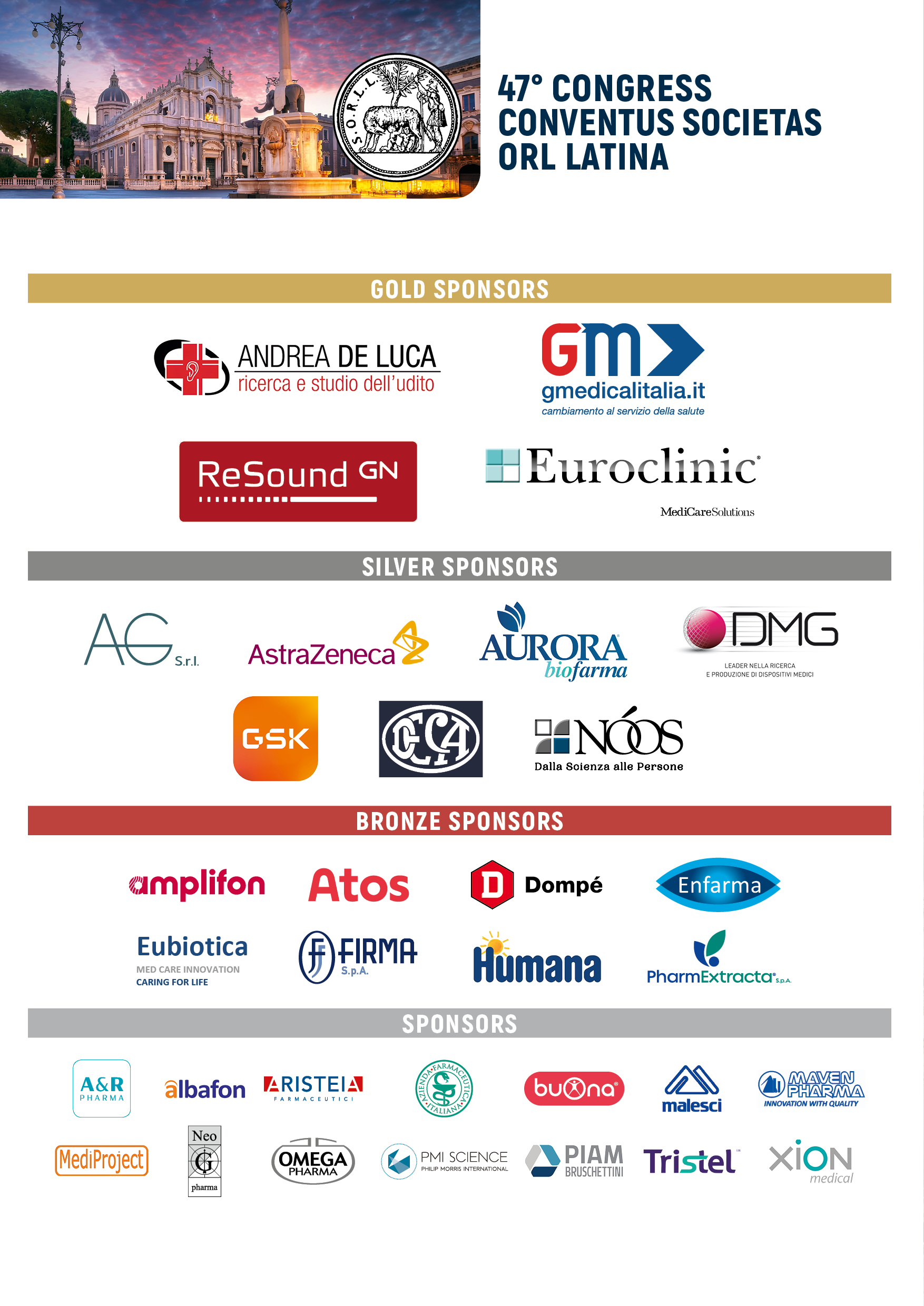 The scientific program (15 hours) is accredited by Agenas (n. 454591) wirh 15 Italian CME credits, for Surgeon, Speech Therapist, Hearing Aid Technician and Audiomestrist Techinician.